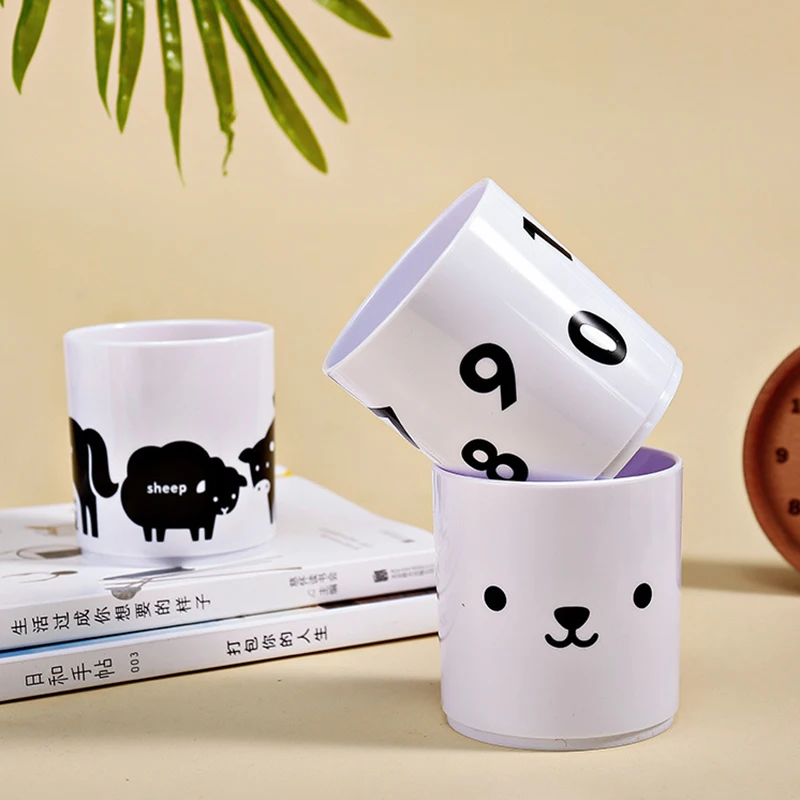 Each ceramic mug has a brightly coloured.