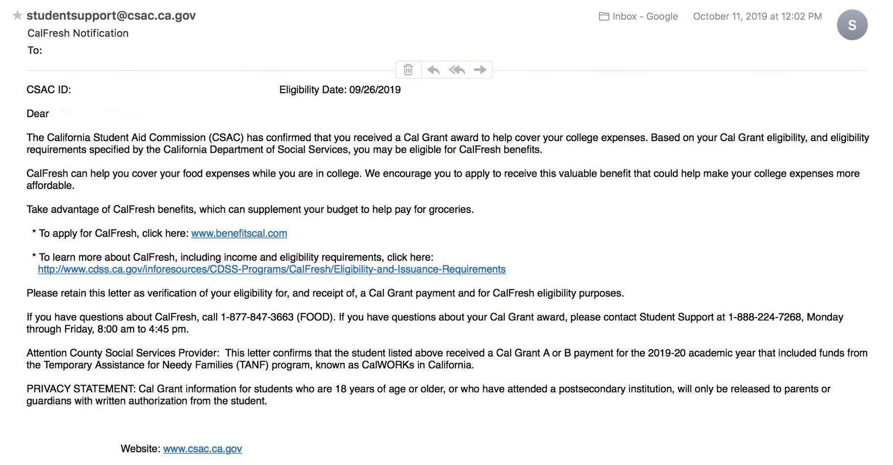 California How Do Why I Can T Certify For Benefits Does This Mean I Didn T Qualify Unemployment , Please Retain This Letter As Verification Of Your Eligibility For, And Receipt Of, A Cal Grant Payment And For Calfresh If You Have Questions About Your Cal Grant Award, Please Contact Student Support At.