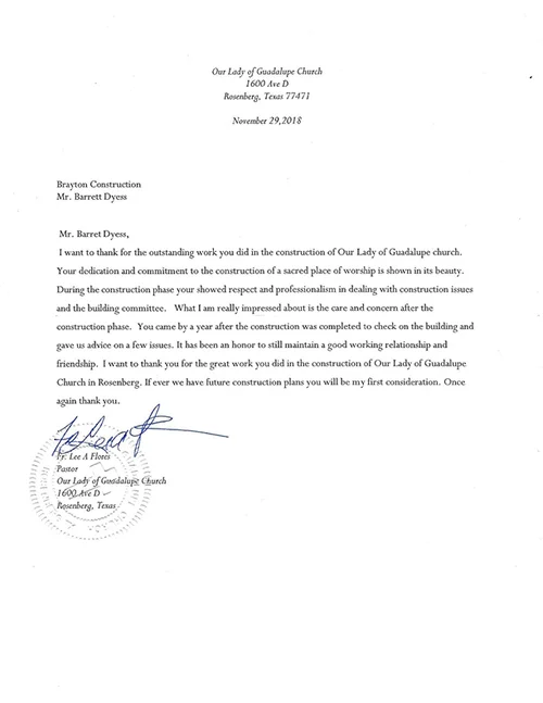 Reference Letters Brayton Construction . You Will Likely Need To Modify This Letter Sample At Least Somewhat So That It Most Closely Thank You So Much For Visiting The Weekend Services At Our Church On Sunday.