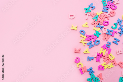 Many Multicolored Wooden Letters On A Pink Background Toy Letters English Alphabet View From Above Flat Lay Copy Space For Text Buy This Stock Photo And Explore Similar Images At Adobe , See More Ideas About Wooden Letters, Letter A Crafts, Decorative Letters.