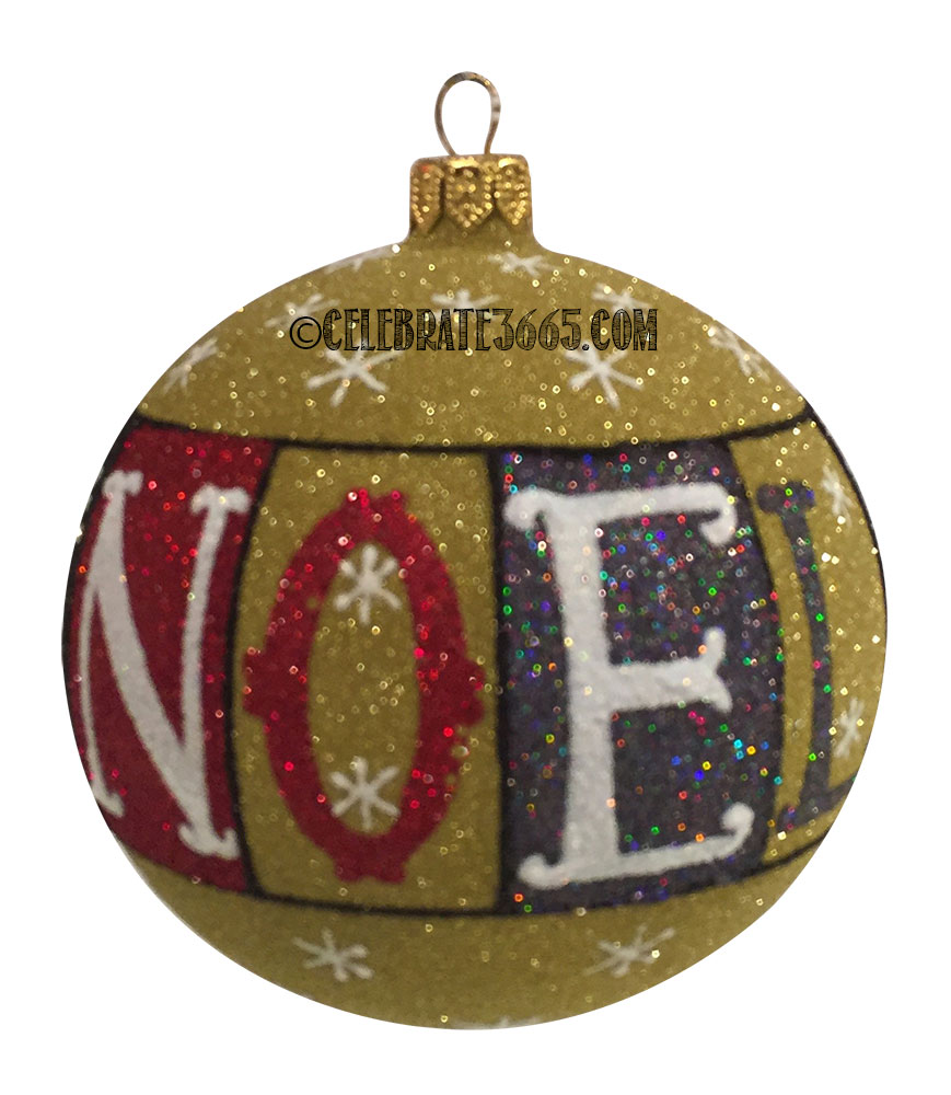 Gold Noel Letters, Blue And White Mottled Colors Inside The Letters Add Depth To The Night Sky Filled With Stars.