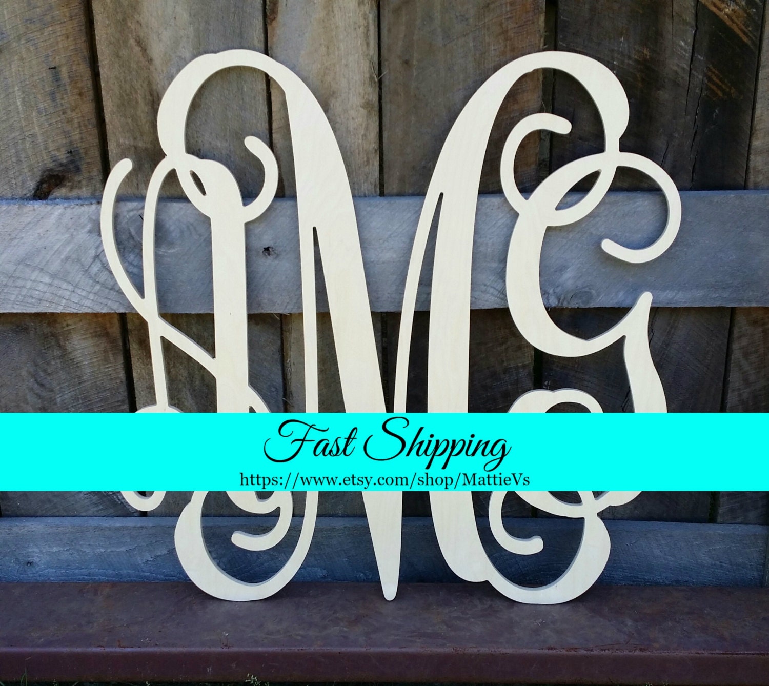 Free Shipping 24 Wooden Monogram Unfinished Wood Monogram Wood Letters Monogram Home Decor Wall Hanging Monogram Door Hanger - Center Monogram Letter Is For Last Name And Will Be Larger.