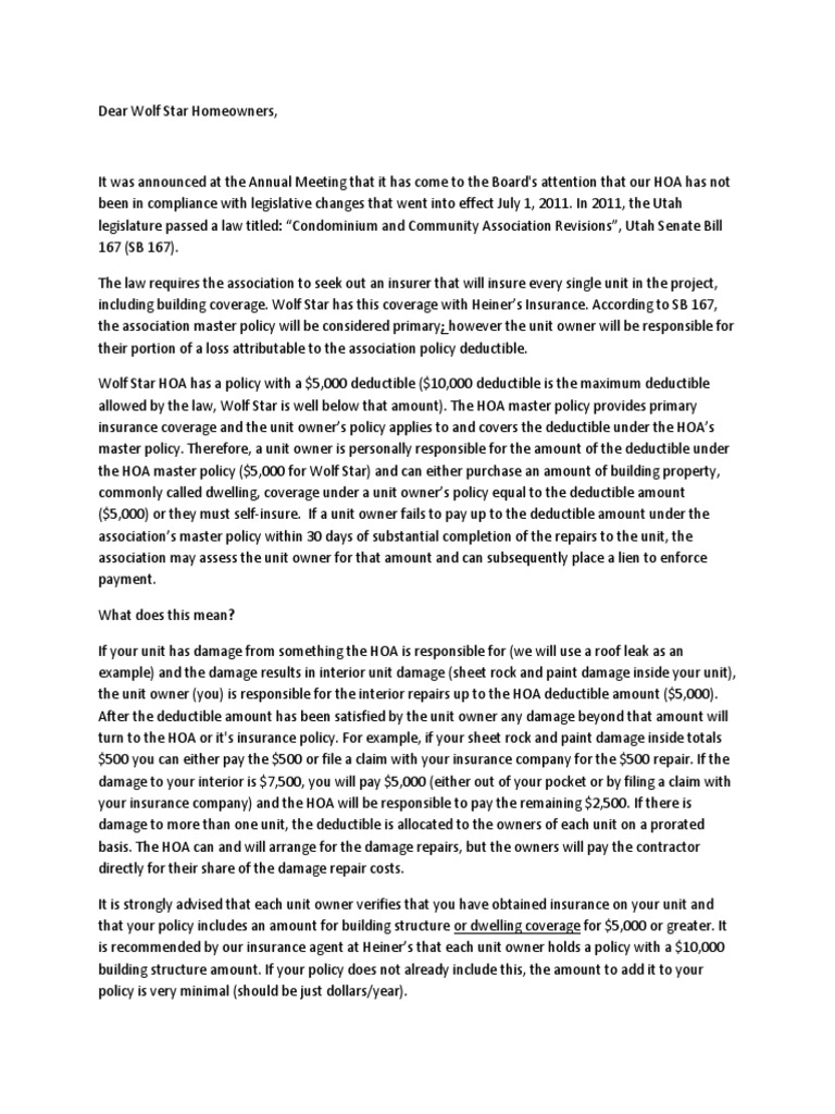 Sb 167 Letter Deductible Insurance Policy - Surely, You Get Letters From Owners.