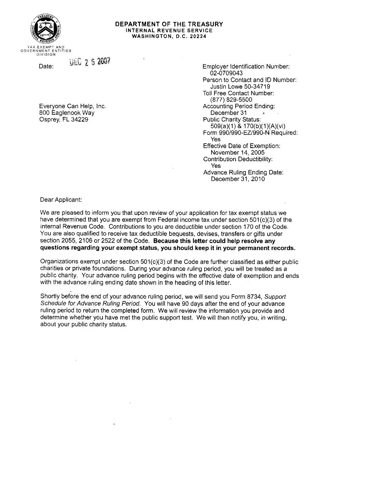 Dht Irs Determination Letter Doing His Time. An examiner reviews your application to if everything is in order and your organization meets all irs requirements, you will receive a determination letter approving your application and. The foundation group provides services for irs 501(c)(3), 501c3 tax exemption applications, starting a nonprofit, form 990 and state/federal compliance. Did the irs revoke your nonprofit's 501(c)(3) status for failure to file form 990 for 3 consecutive years? 501(c)(3) irs determination letter. osf, 11 apr. Before becoming a 501(c)(3) organization, you must apply for that status with the internal revenue service (irs). Carthage college irs tax determination letter. The irs 501(c)(3) determination letter says your nonprofit is exempt from income tax and that you are eligible for certain benefits as a nonprofit. Tax exempt status letter access letter below. Brooks, ronald e, iii, and brian a nosek. Organizations described in section 501(c)(3) are commonly referred to as charitable organizations. Rules governing practice before irs. It doesn't get any better than 501c3go. If you know you have your 501c3 status but have lost your determination letter, call the irs. Section 501(c)(3) organizations are restricted in how much political and legislative (lobbying) activities they may conduct. Your harvard lawyer at your side through the complex state and irs process.