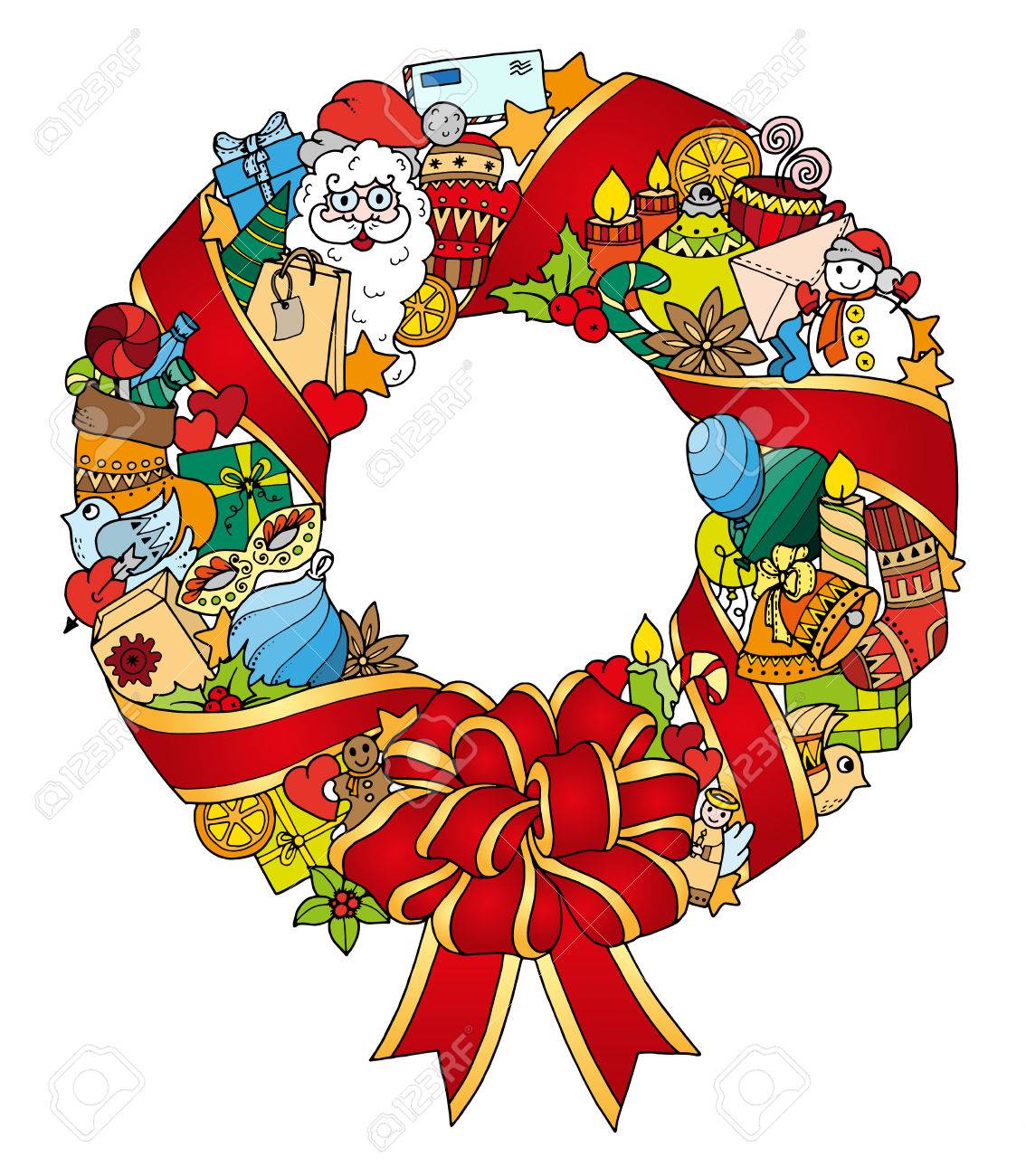Christmas Wreath Doodle Pattern With Balloons Bells Sweets Royalty Free Cliparts Vectors And Stock Illustration Image 50559187 - Such An Easy Way To Glam Up Your Front Door For This Holiday Season!