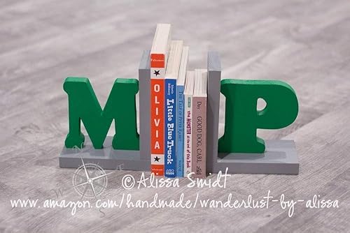 Amazon Com Letter Bookends Initial Bookends Wooden Custom Bookends Custom Created To Coordinate With Your Decor Alphabet Bookends Name Bookends Grey And Green Gray And Green Handmade , Wooden Christmas Angel Bookends Xmas Gifts For Home Topdesk Decoration With Letter.